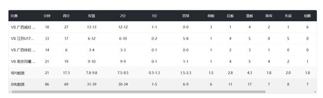 在10月1日晚才打完的对阵南京同曦的比赛,广东U17全队6人上双,刘卫霖17分10篮板,谈仁凯22分3篮板,徐小华20分5篮板,姚嘉泽10分11篮板,梁琼斌10分3助攻,赵昱锟19分5篮板4助攻。