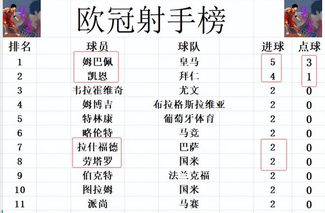 射手榜方面,姆巴佩今天上演帽子戏法后2轮打入5球继续位居榜首,凯恩2轮4球紧随其后位列第2。劳塔罗梅开二度,追上拉什福德,图拉姆,略伦特,韦拉霍维奇等人,将前十门槛提高到2球。