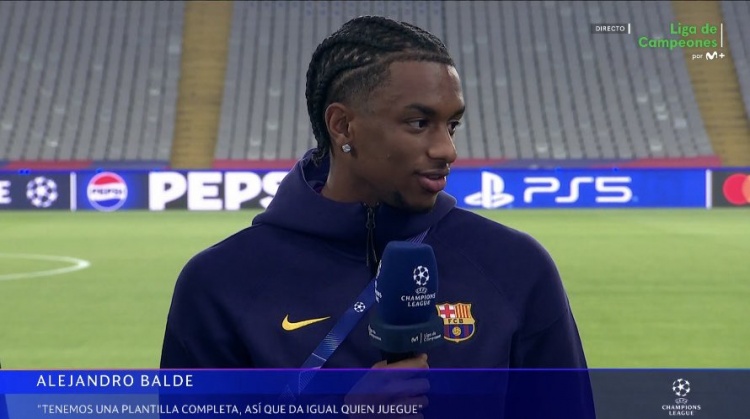 10月2日讯 在本轮欧冠对阵巴黎的赛前,巴萨边后卫巴尔德在接受采访时谈到了队友亚马尔。