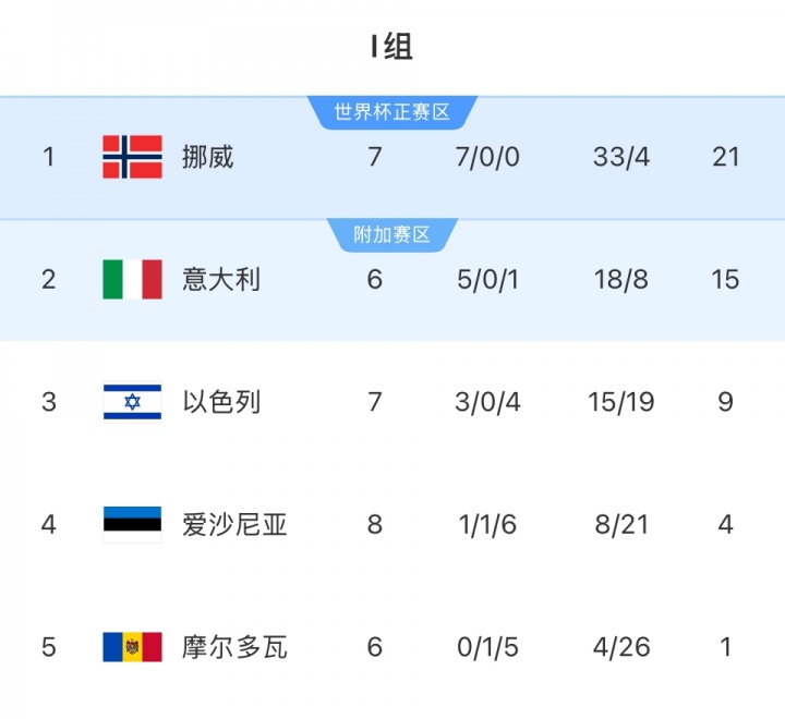 基本锁定晋级!挪威先赛取胜,多赛一场领先意大利6分+19个净胜球